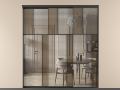 Перегородка Mosaic внутри проёма 3 створки с синхронным механизмом