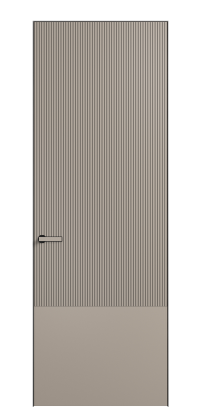 Это полотна с рельефной фрезеровкой. Этот прием делает интерьер объемным, тактильным, вносит интересную текстуру и создает современный образ. Волнистый рельеф может быть выполнен по ламелям из массива дуба в древесных матовых отделках, либо исполнен по натуральному и экологически безопасному материалу — ХДФ, покрытому гладкой эмалью актуальных оттенков.